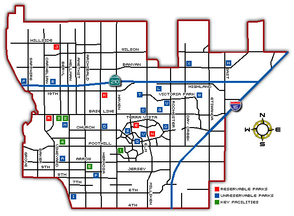 As a part of the City's master plan a number of beautiful public parks have been developed. Use the links on the chart below the map for detailed info about each of our local parks.